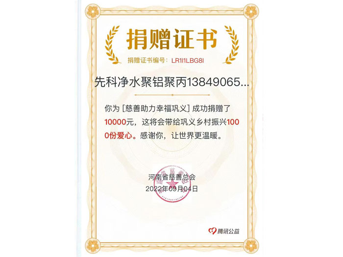 鞏義市先科凈水材料廠始建于1995年,20多年來先科人始終以凈化水源,造福人類為己任,堅持誠實守信,拼搏創新的精神,滾動發展。共有職工50名,年產各種凈水材料5萬噸,產值上億。